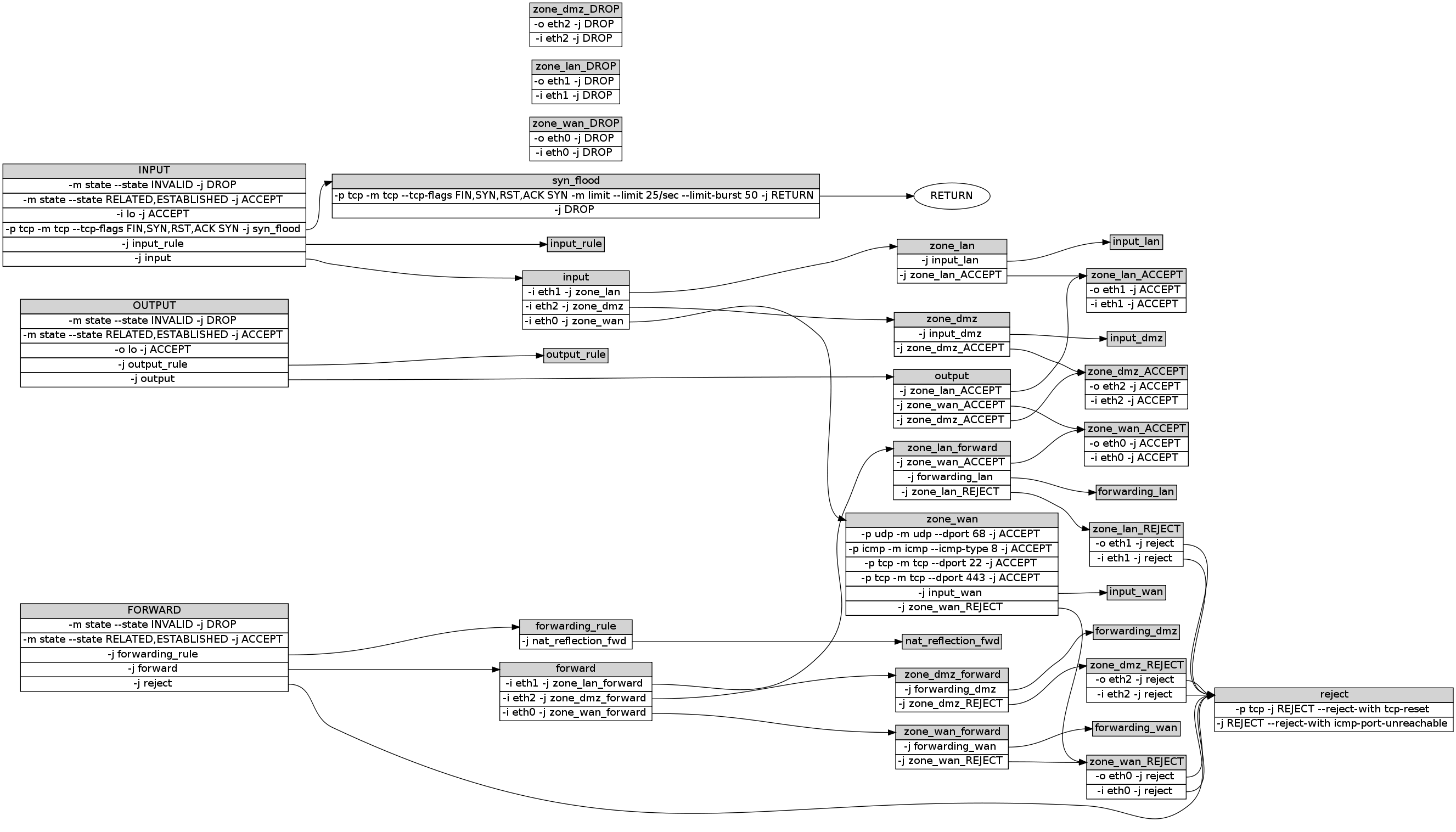 Graph der iptables Tabelle 'filter' von OpenWrt
