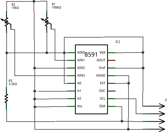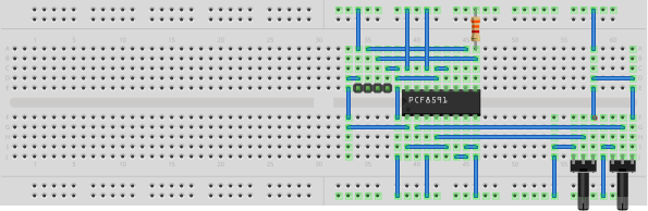 Da ich hin und wieder mit elektronischen Schaltungen experimentiere, wollte ich mich schon seit längerem in dieses Thema einarbeiten. Am liebsten mit einem Experiment. Es gibt etliche Schaltkreise, die die unterschiedlichsten Funktionen erfüllen und via I²C angesprochen werden können. So kann ich zum Beispiel mit dem PCF8574 acht Leitungen als binären Eingang oder Ausgang betreiben, der PCF8591 wiederum enthält vier A/D-Wandler und einen D/A-Wandler. Diesen Schaltkreis habe ich auch in meinem Experiment verwendet. Datenblatt und Bezugsquellen gibt es zum Beispiel bei Octopart.