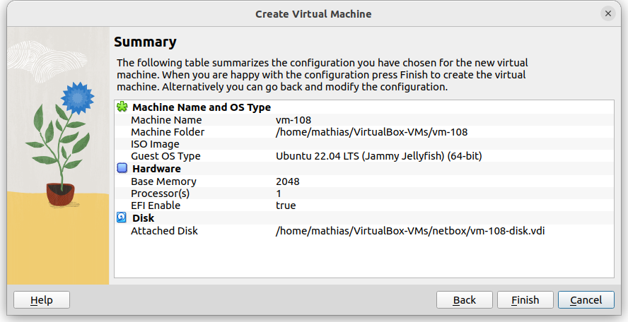 In der Zusammenfassung kontrollierte ich noch einmal alle Werte und erzeugte mit Klick auf Finish die neue VM.