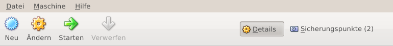 Dazu starte ich VirtualBox und klicke den Schalter "Neu" an.